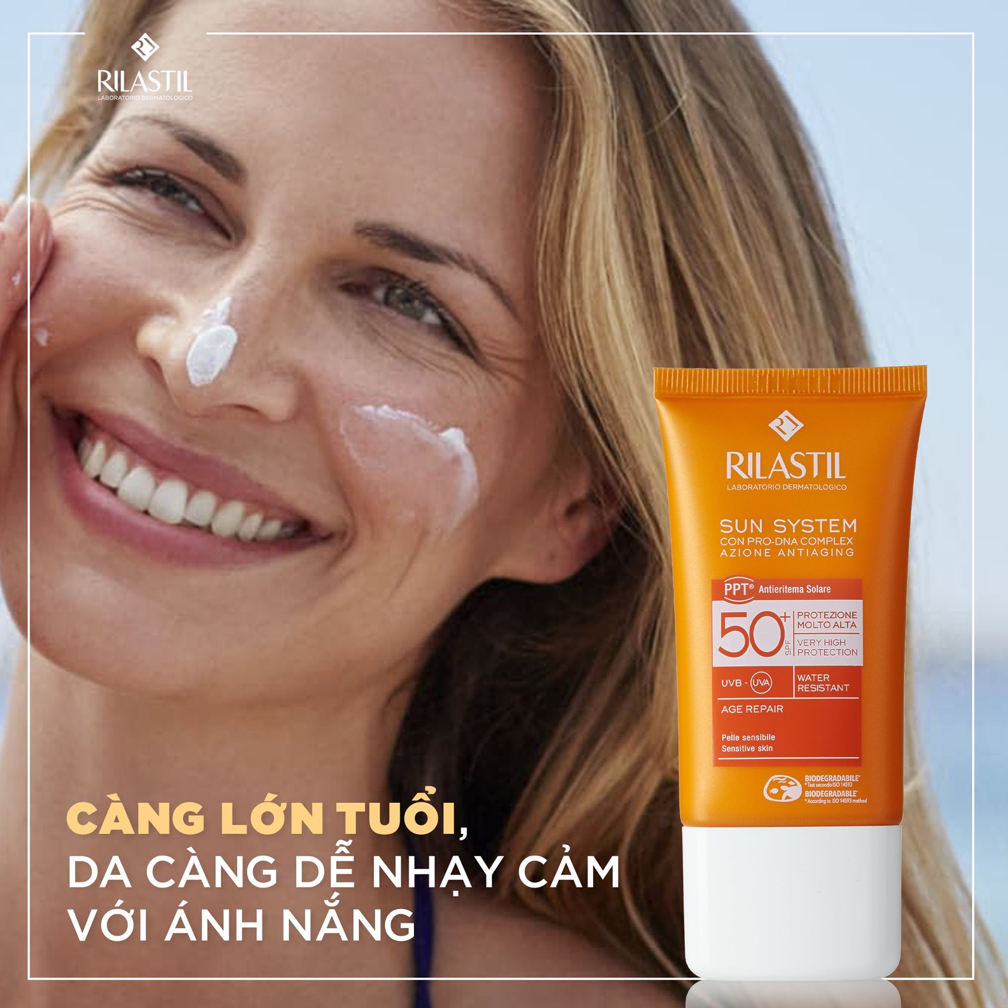 Rilastill gợi ý đến bạn kem chống nắng – Rilastil Sun System Age Repair SPF50+ giúp làn da: