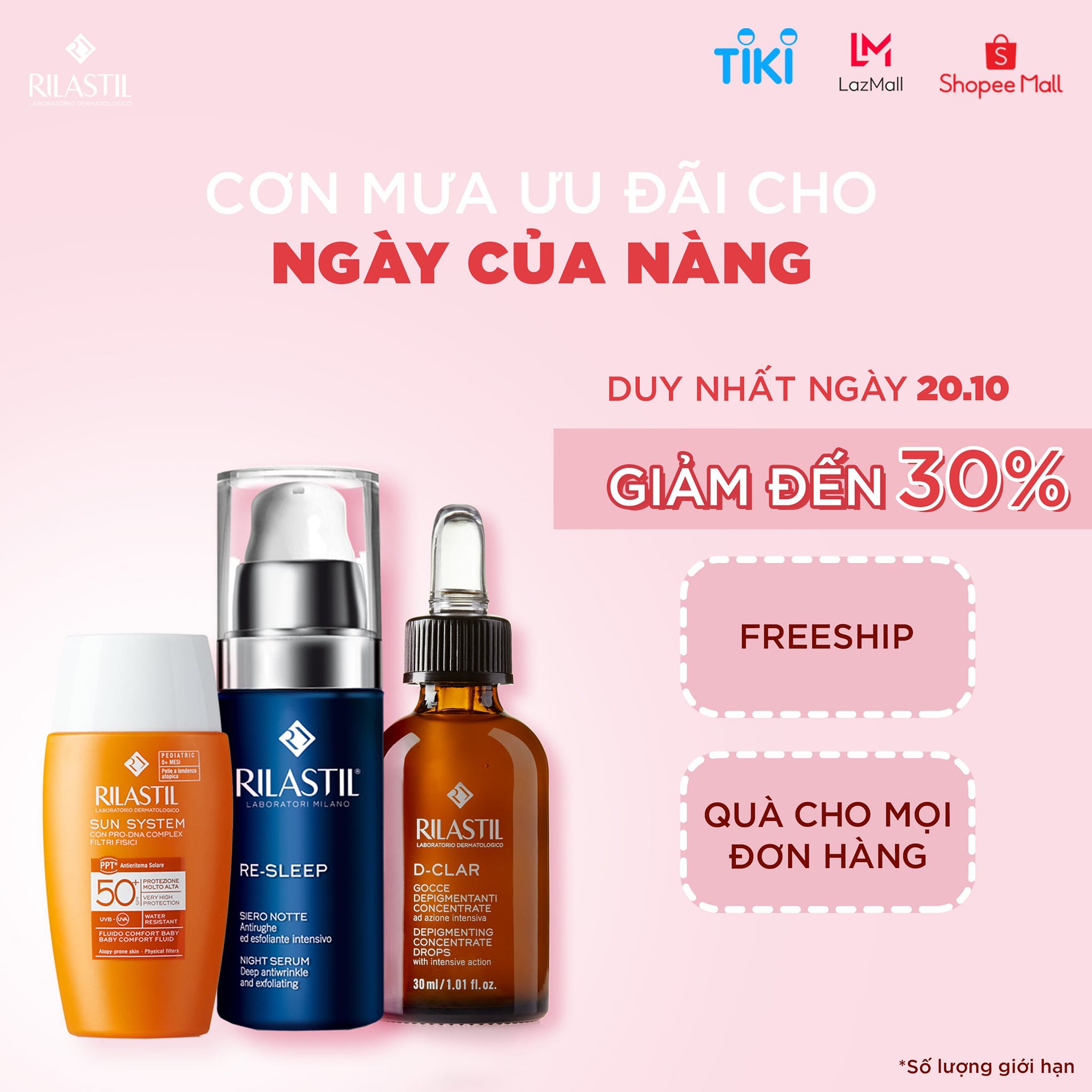 🎉Nhân ngày 20.10 sắp đến, hãy để Rilastil nuông chiều làn da của bạn với những ưu đãi độc quyền và vô vàn quà tặng xịn xọ: